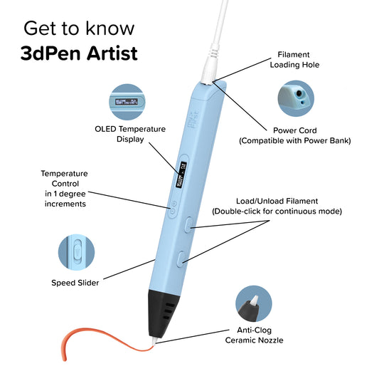 myFirst 3dPen Artist – 3D Pen with Display for Kids & Teens | PLA & ABS Compatible