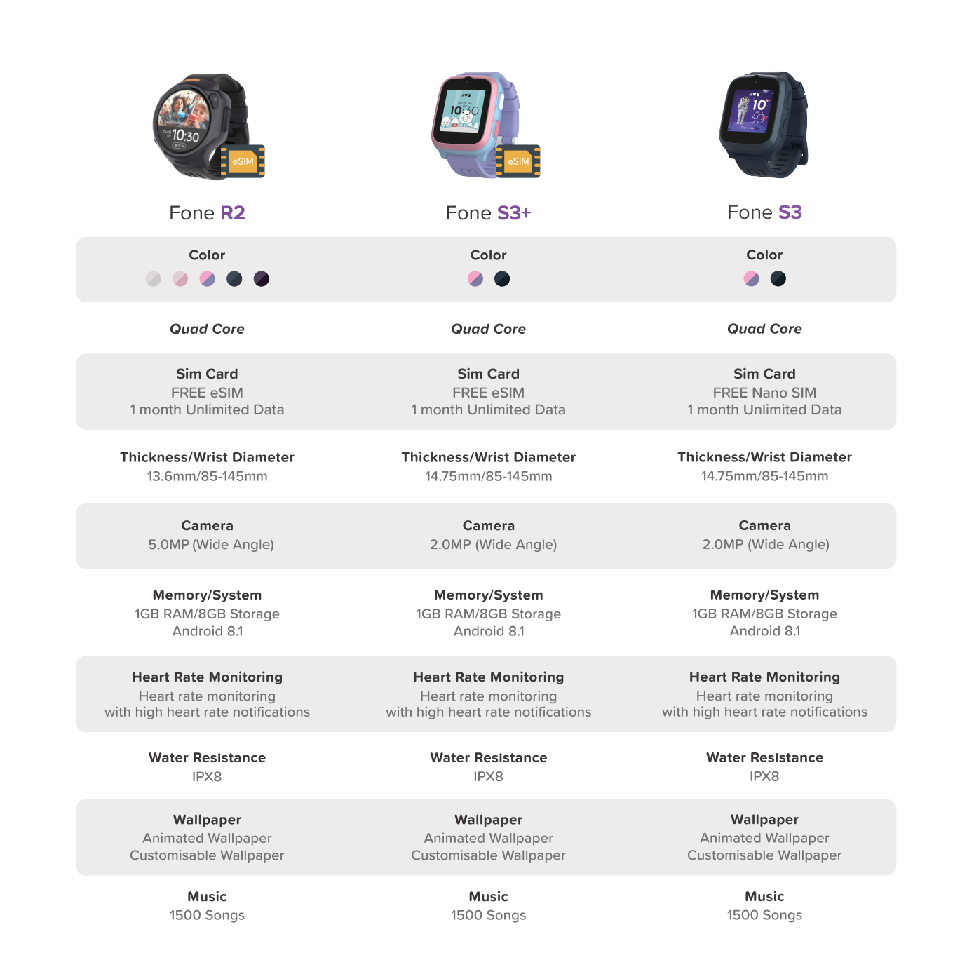 Big screen, better battery. A 5MP camera, bright low-power display, and slimmer profile make the R2 the most advanced kids smartwatch we’ve ever made. With GPS tracking, video calls, and all-day battery life, it’s built to keep kids connected—and parents reassured. It even has IPX8 water resistance making it our most waterproof kids smart watch yet.
