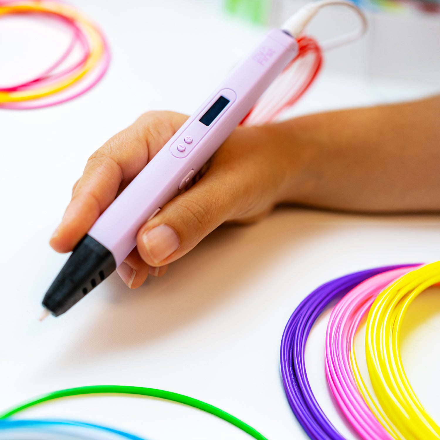 The myFirst 3dPen Artist uses PLA filament, a safe and biodegradable plastic commonly used in 3D printing. Compared to other filaments used in 3D printing, PLA melts at a lower temperature. This makes it ideal for 3D pens, as the pen itself doesn't need to get extremely hot.