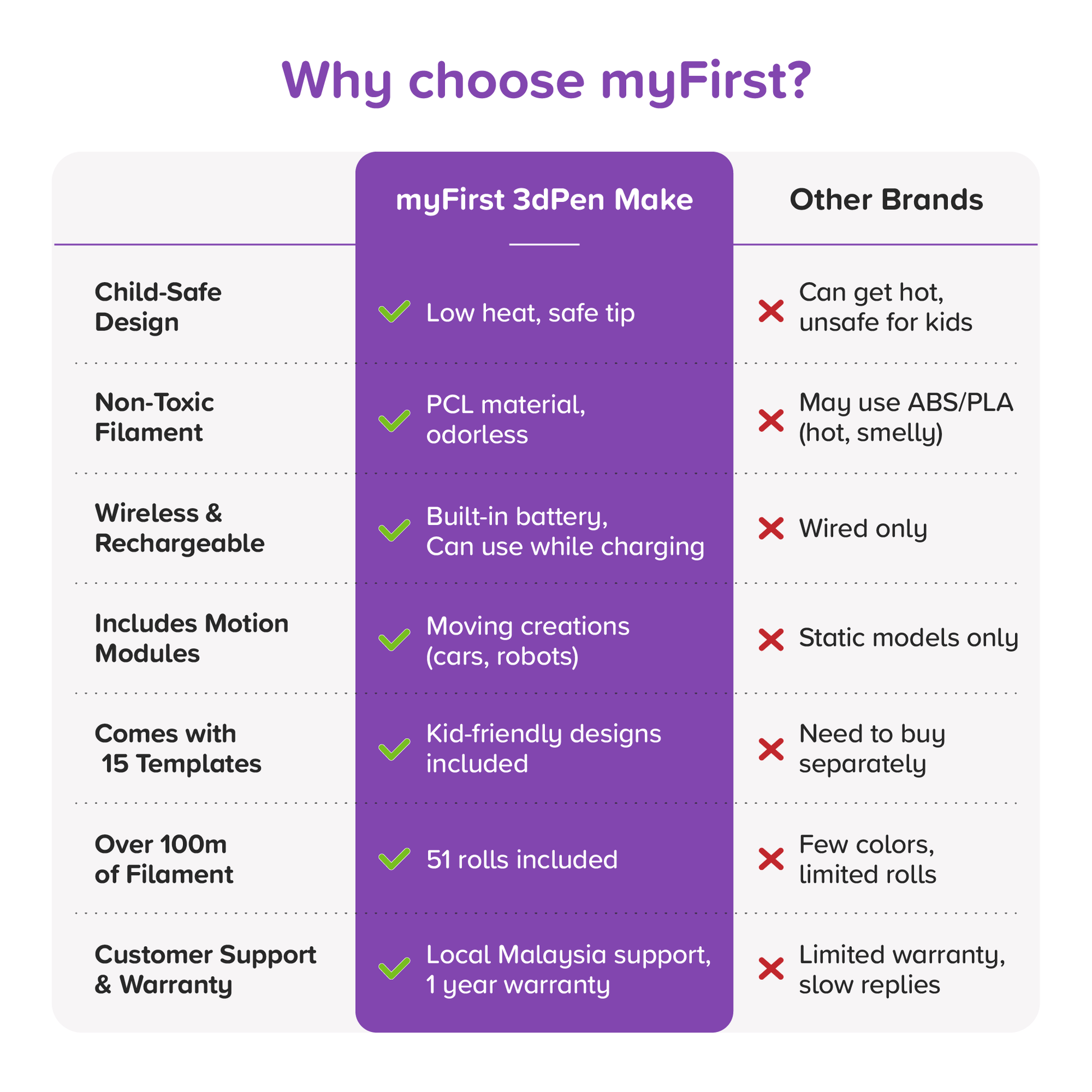 The myFirst 3dPen Make is suitable for kids aged 5-12 and above.