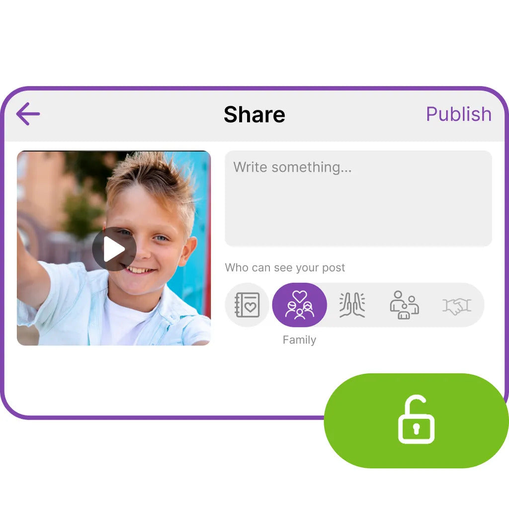 2. Limited Sharing: Through myFirst Circle, parents can control who can see their child's creations, ensuring content stays within a trusted circle. Children can post photos in a child-friendly social circle, categorized by relationship type (Family, Besties, Friends, Acquaintances), with parents managing visibility and editing posts if necessary.