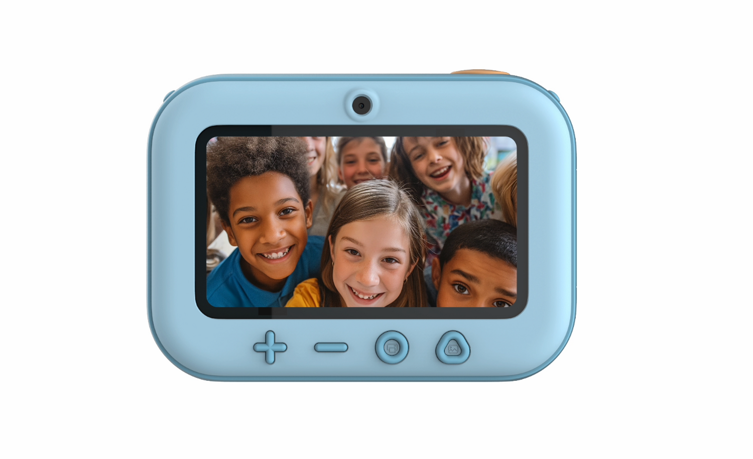 The dual-screen design features a 3.0” IPS color display and a front OLED screen that showcases interactive pixel-style animations, emojis, and countdowns. This makes photography more engaging and fun for young users.