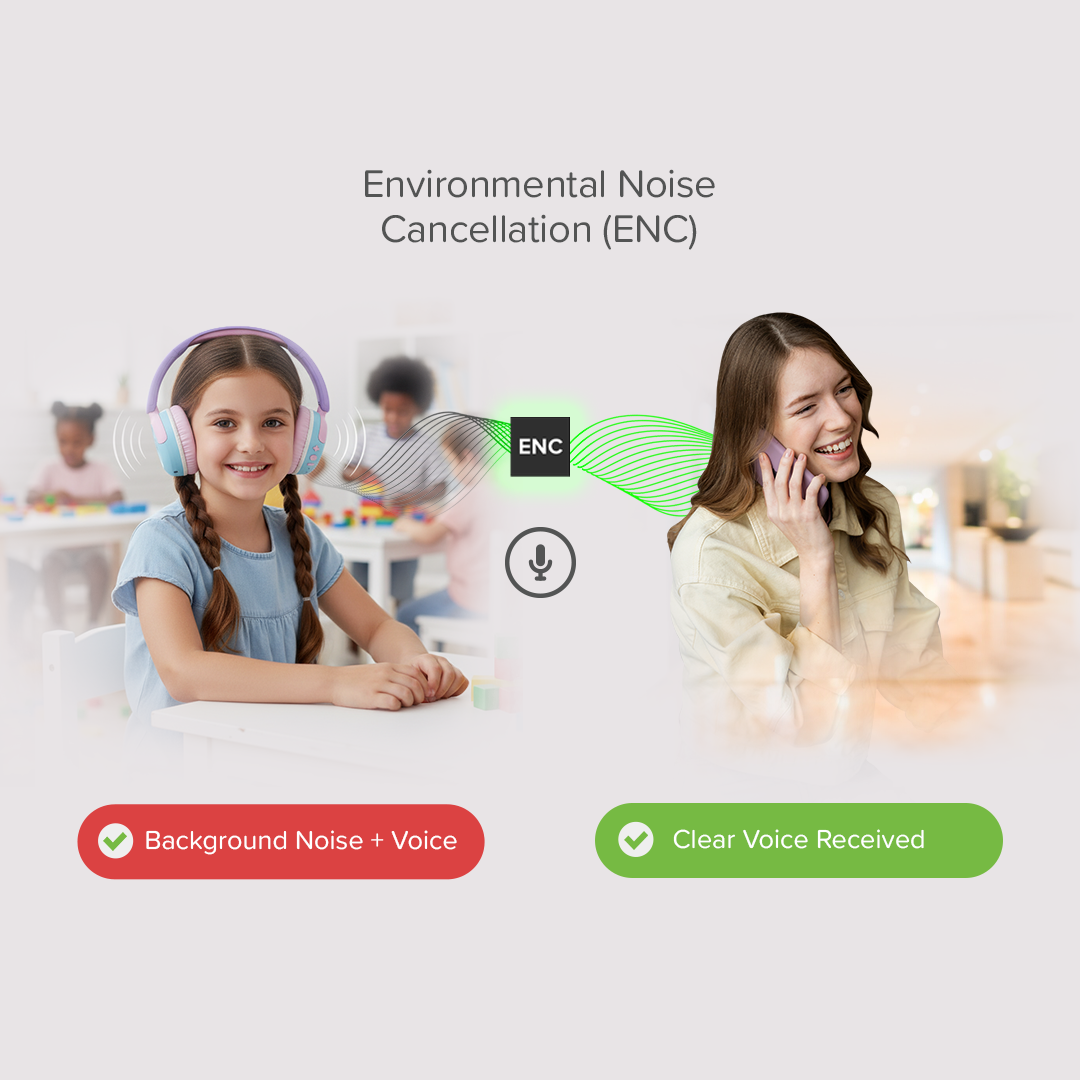 Built-in ENC (Environmental Noise Cancellation) technology actively removes distracting background noise so your child can hear and be heard clearly on every call.