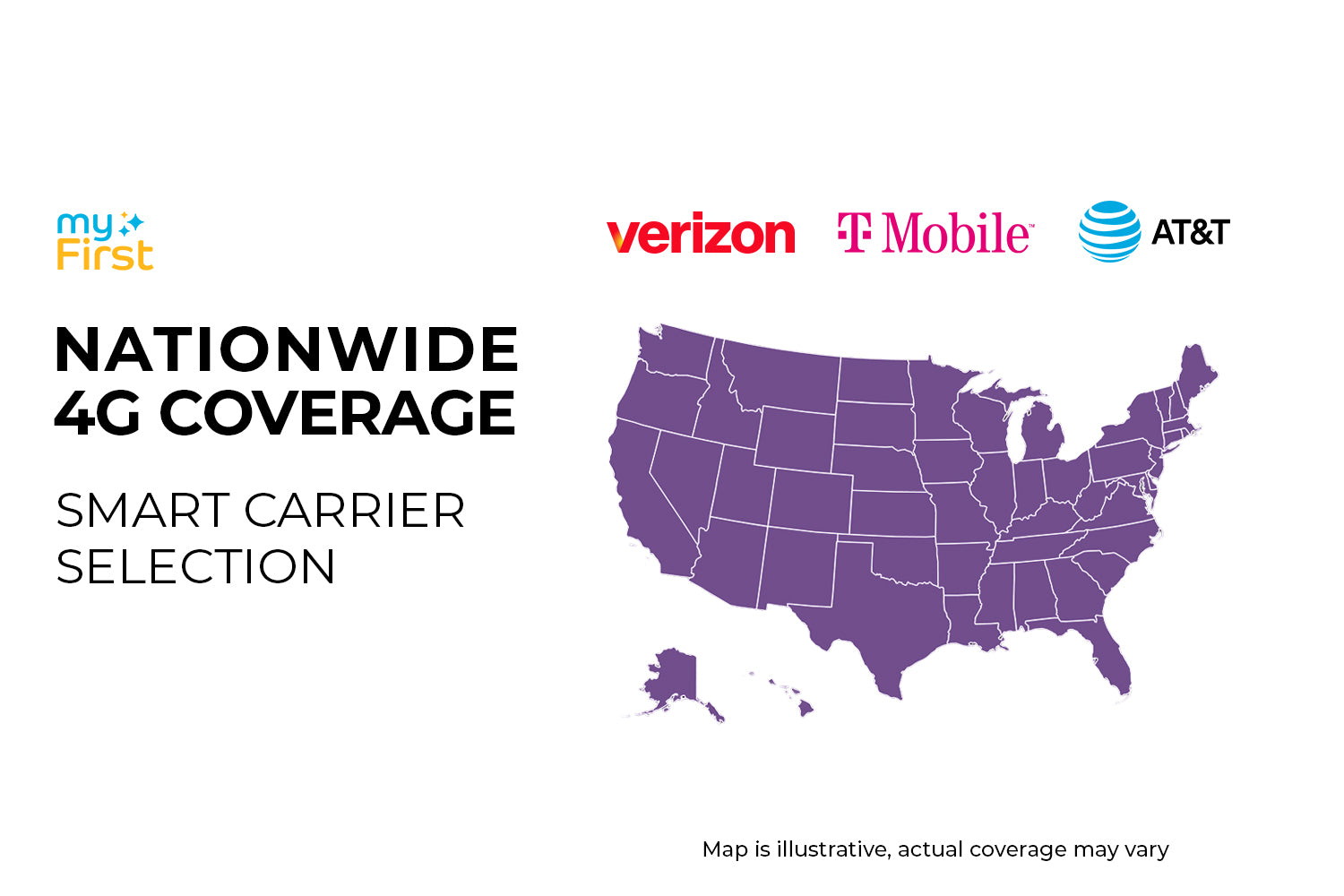 Smart Carrier Selection connects to the strongest network across Verizon, T-Mobile, and AT&T.
