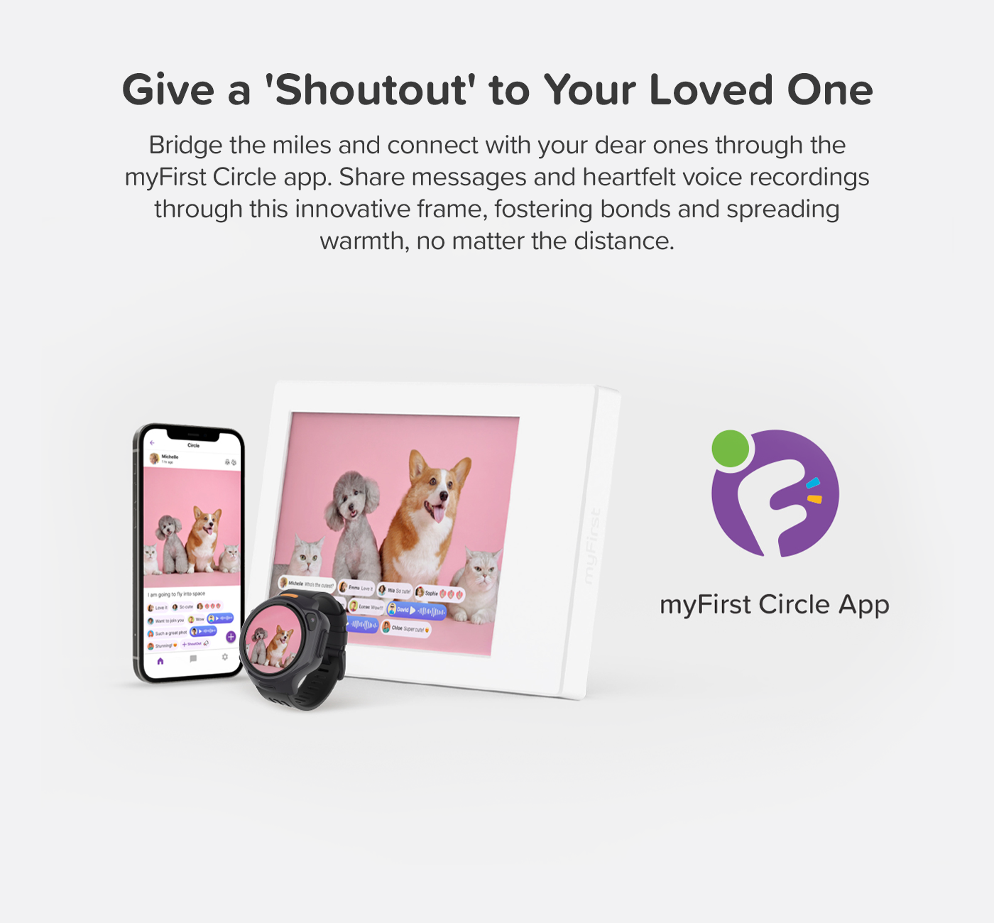 myFirst Circle is a system that connects your myFirst Frame to your smartphone and other myFirst Circle devices, so you can easily share photos and videos with your family, no matter where you are. It also offers features to help families stay connected, such as location tracking, safe zones, and notifications.