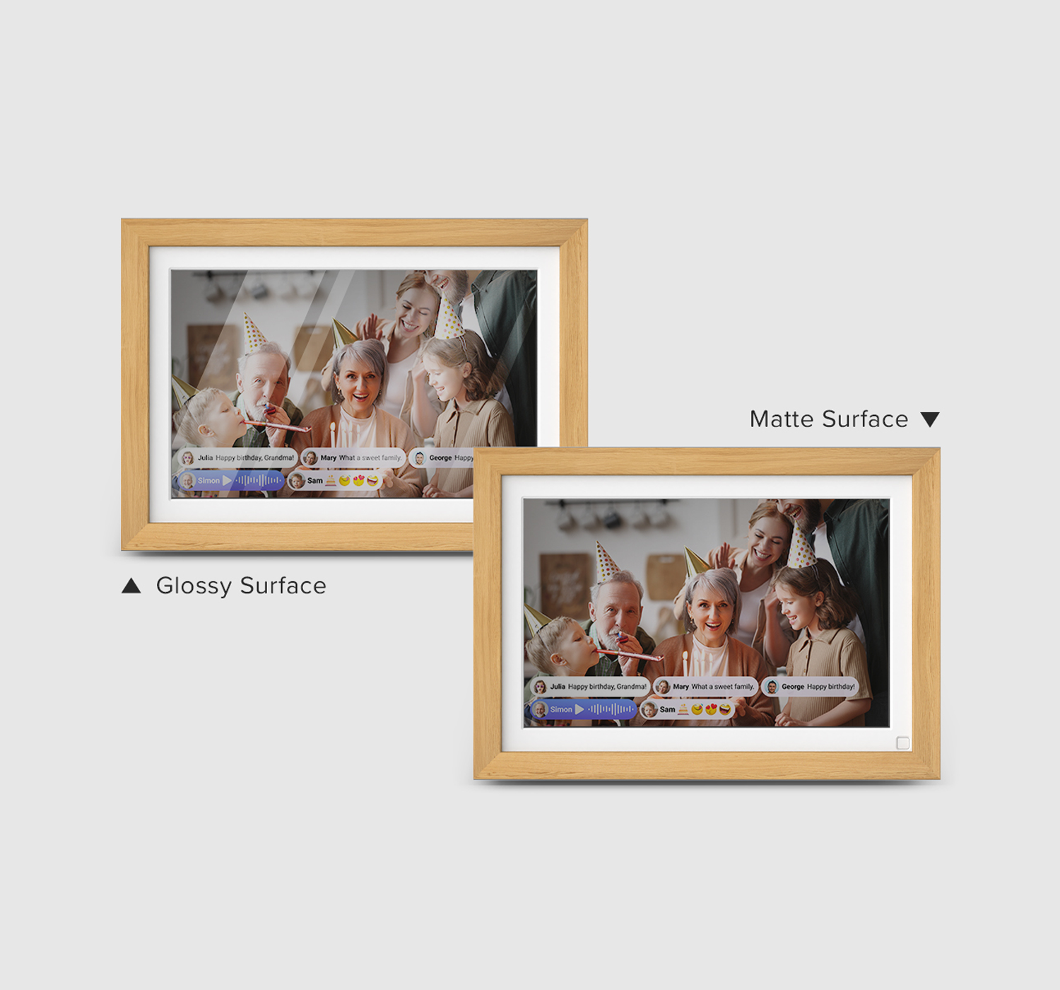 The Frame Live seamlessly integrates with our myFirst Circle app, allowing you to easily share photos or videos with your loved ones for displaying on its anti-glare matte screen.