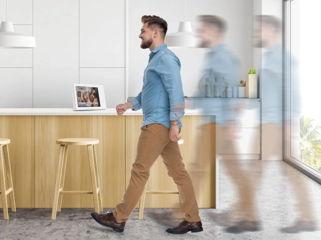 Our eco-friendly power-saving design automatically turns off the device when you exit the room, and it eagerly awaits your return, displaying new moments as you approach.