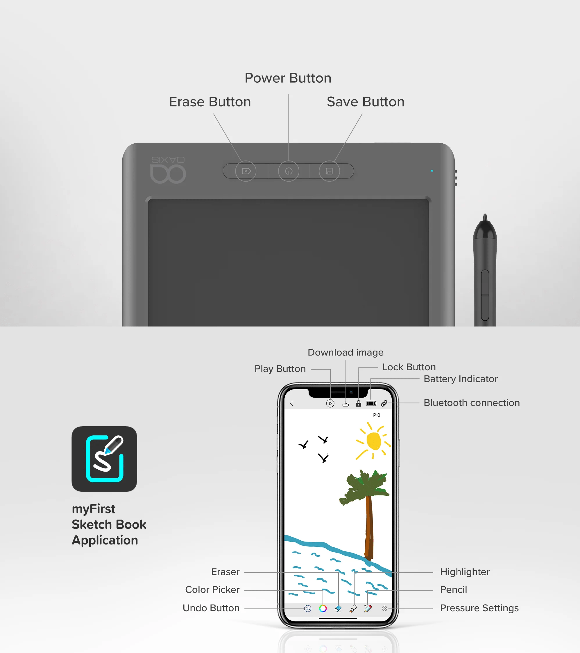 Pair with our Sketch Book app via BT to your Android or iOS device. Let your child expand their drawing abilities by adjusting the font thickness, pens, tip size, and color that creates a different feel of writing and drawing.